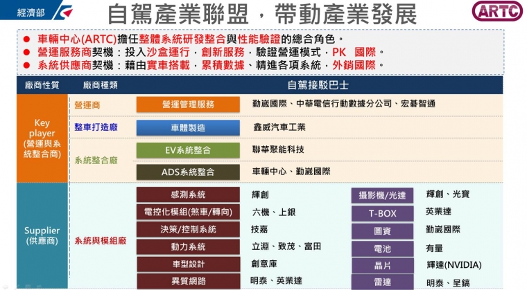 由經濟部技術處科技專案支持,財團法人車輛研究測試中心(簡稱ARTC、車輛中心)串連產業打造的MIT自駕電動小型巴士- WinBus,8月26日在經濟部部長沈榮津與產業貴賓們的見證下揭幕。WinBus誕生的里程碑,充分向國人證明臺灣自駕車科研人才高水準的軟實力以及臺灣產業供應鏈串連起來的國家代表隊硬實力,台灣隊的表現絕不遜於國際大廠,足以帶領臺灣自駕車產業競逐國際舞台。